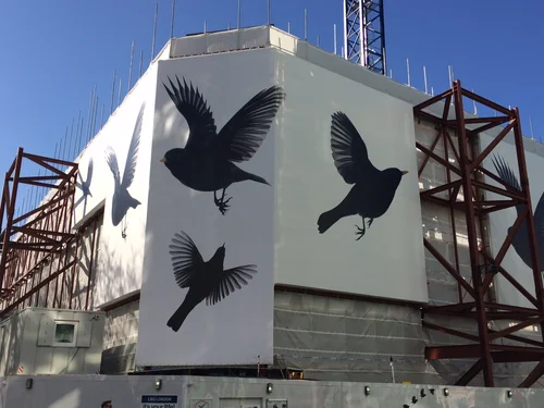 The concept of this was bringing the cinema heritage from the area throughout the building sales project, in this case it was Alfred Hitchcock’s movie The Birds. So the building and sales brochure were adorned with these birds which I cutout, retouched and visualised onto the skeleton of the building.